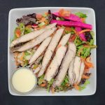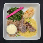choix de protéine, servie sans riz ni couscous et ajout de salade verte