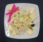 ajout de brunoise de radis, poivrons verts et oignons verts
