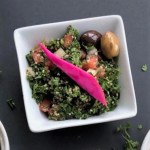 ajout de tabboulé, brunoise de radis, poivrons verts et oignons verts